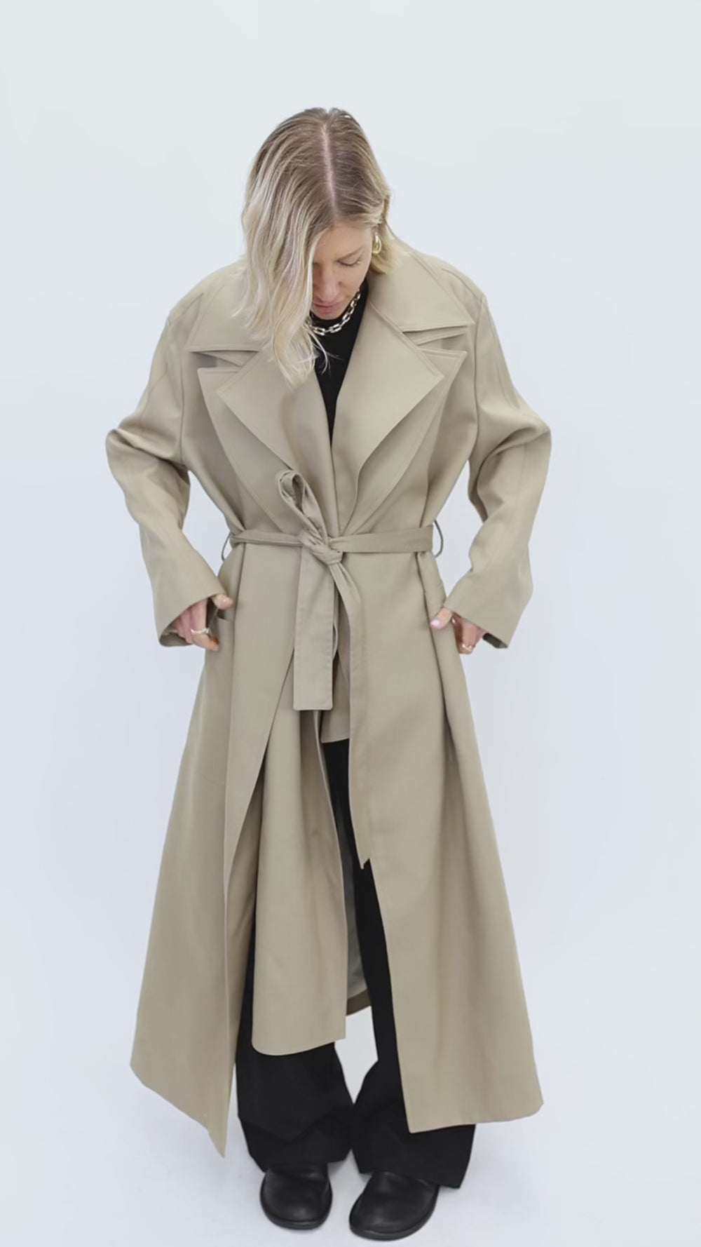 BELTED TRENCH COAT WITH DOUBLE COLLAR
