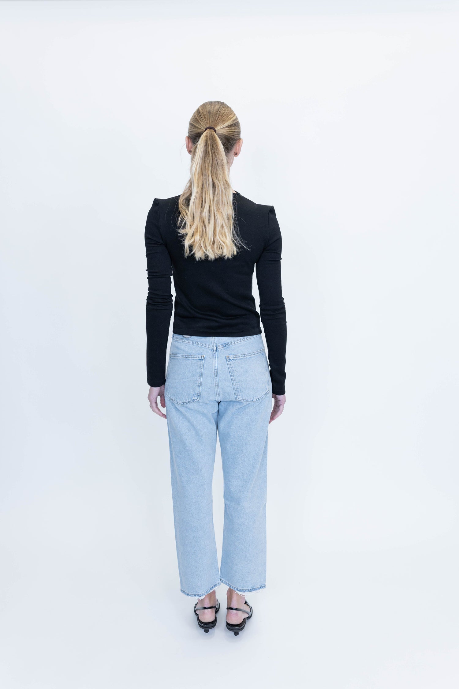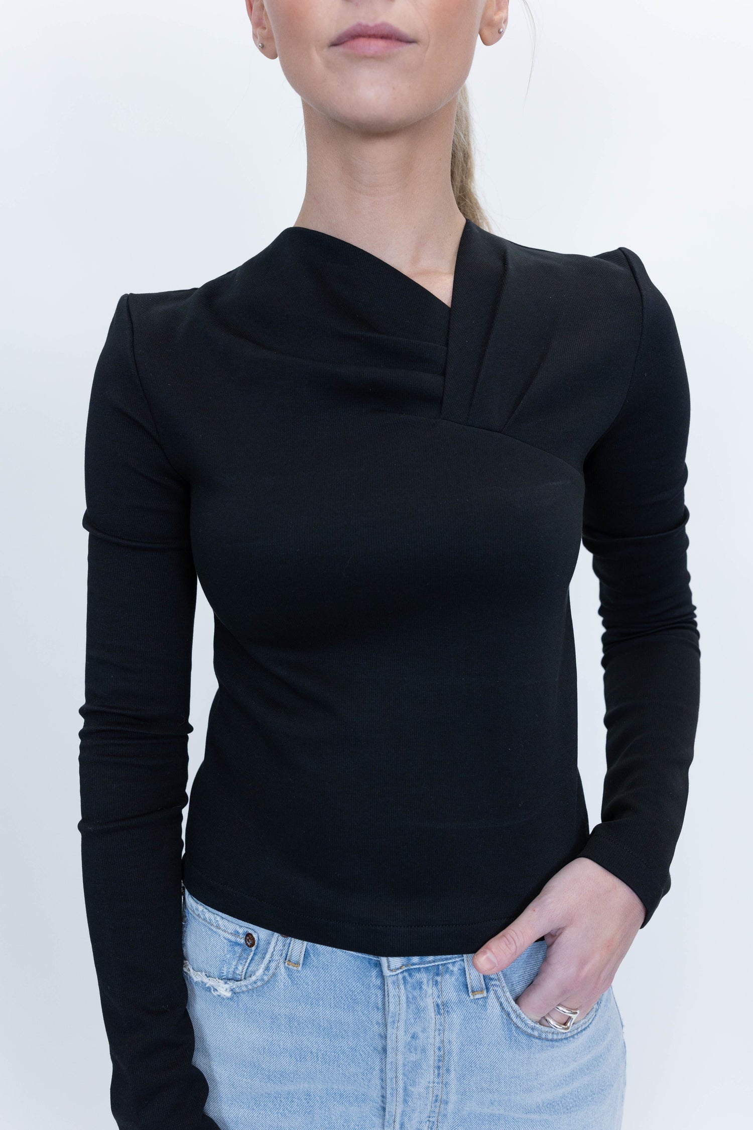 MALA asymmetrical top. Pleated details on the front and fitted cut.